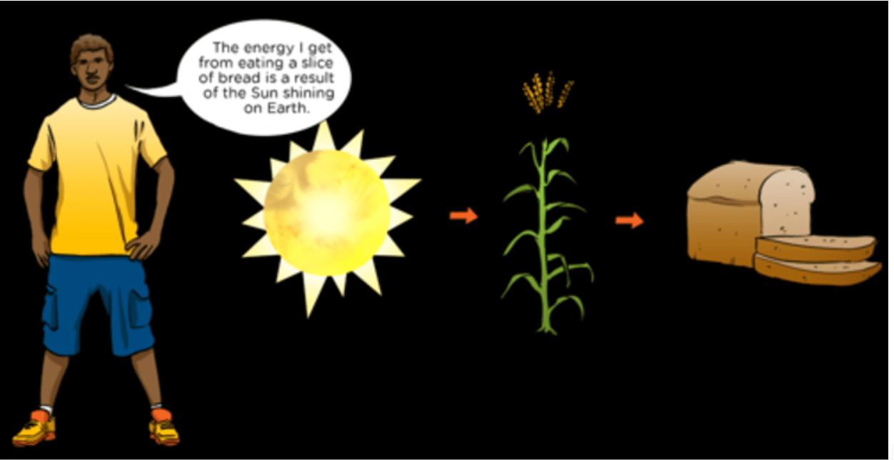 What do plants do with their doses of sunlight? By means of photosynthesis, they turn the energy gathered from the sun into sugars. And what is sugar? It is a form of stored energy! Ergo, light is energy!